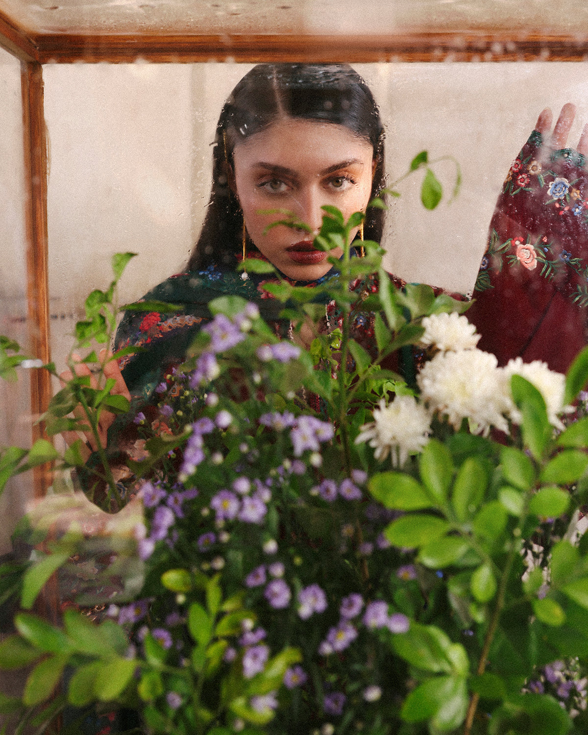 Description: This elegant ensemble showcases a richly embroidered shirt adorned with multicolor floral motifs and intricate boring details. The matching sleeves and shalwar echo the same exquisite embroidery, creating a harmonious and refined look. Paired with a vibrant printed wool shawl featuring bold floral patterns, this outfit blends timeless charm with contemporary elegance — a signature piece that celebrates the art of timeless fashion.